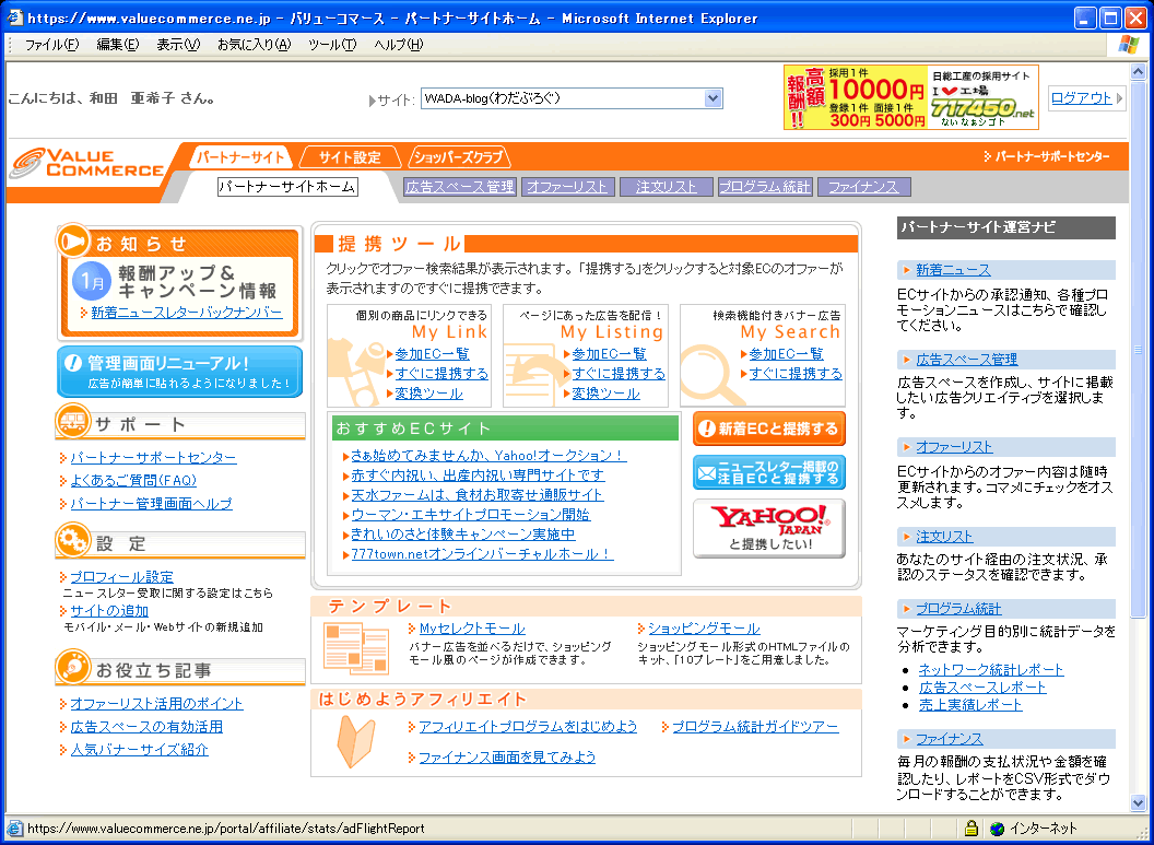 今月、アフィリエイトASP大手バリューコマースの管理画面が大幅リニューアルした。