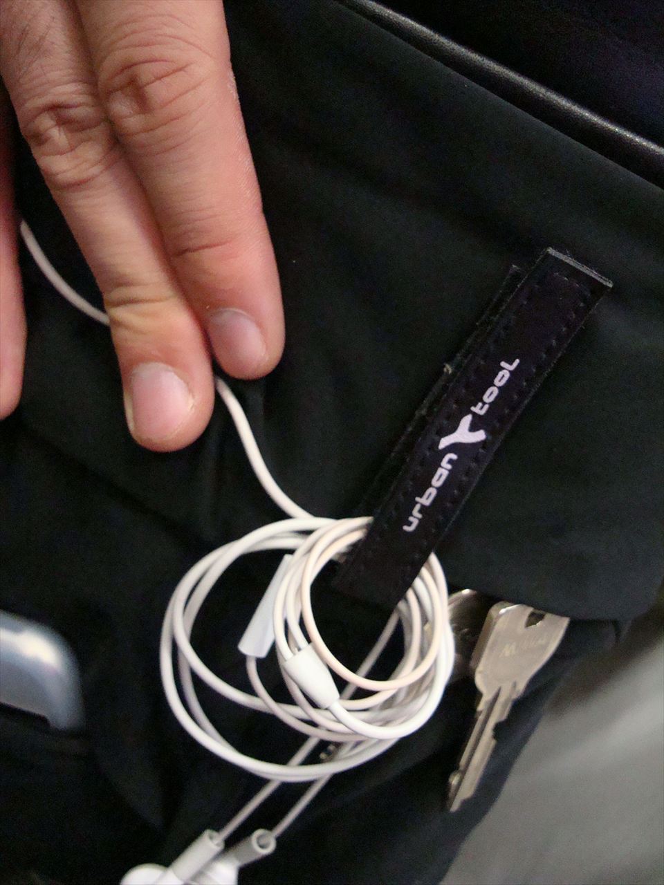 何がお洒落って、イヤフォンのコードを巻いてとめておけるバンドだ。