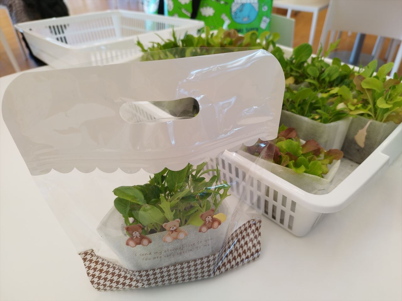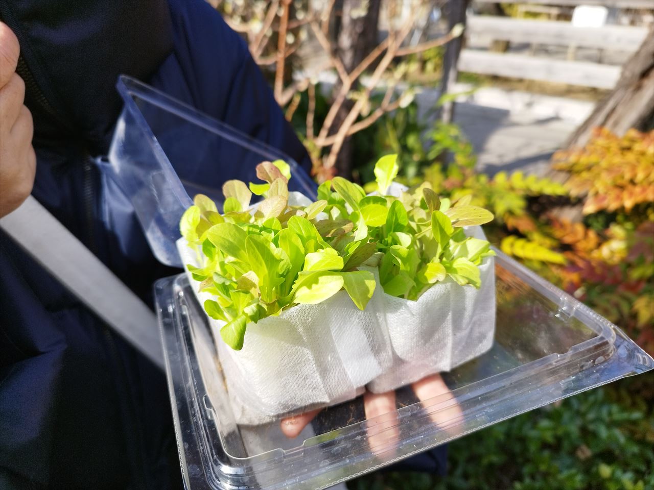 生野菜サラダとして食べてもらう前提なので、育成中はもちろんのこと、運搬・販売時にも衛生面に十分留意したいと思います。