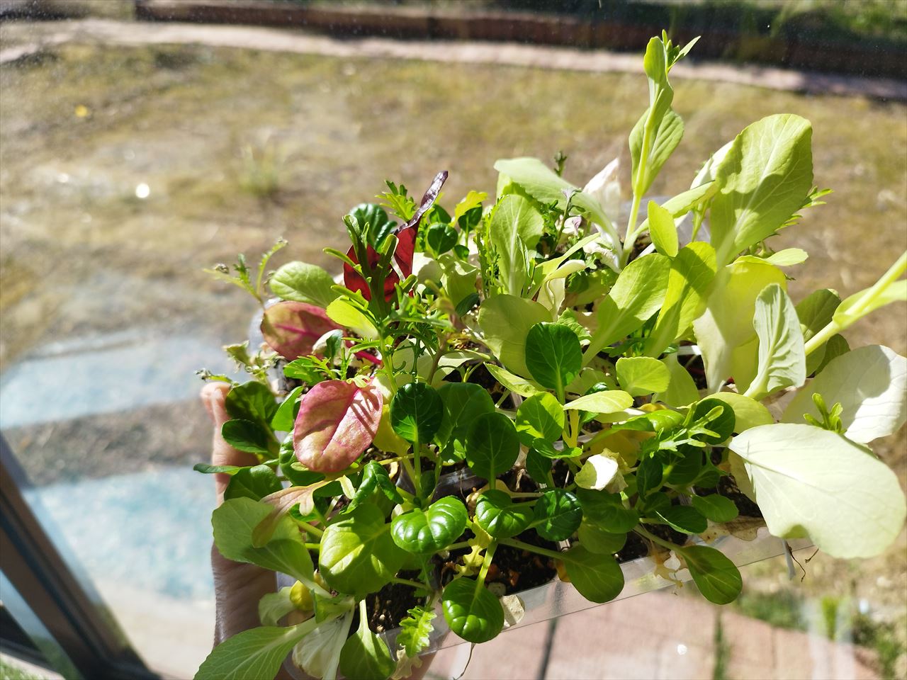 収穫後のベビーリーフなら、パッキングして道の駅などで販売することもできますが、「収穫前」の状態はかさばりますし、慎重な運搬が必要なので流通には乗せにくいです。