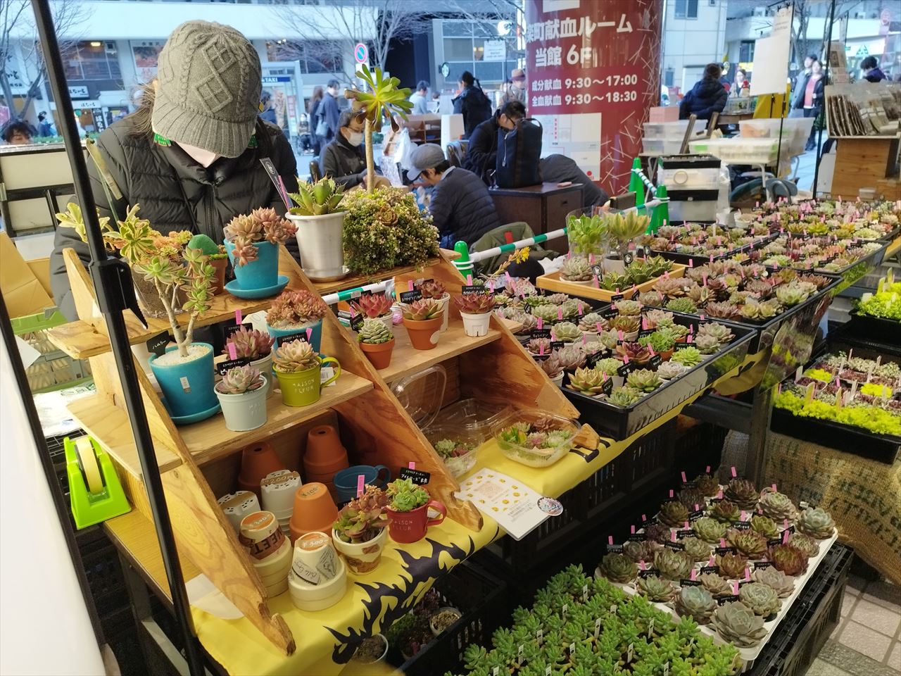 こだわり野菜を販売している人も多く、このミニ多肉植物のお店が本当に素敵でした。