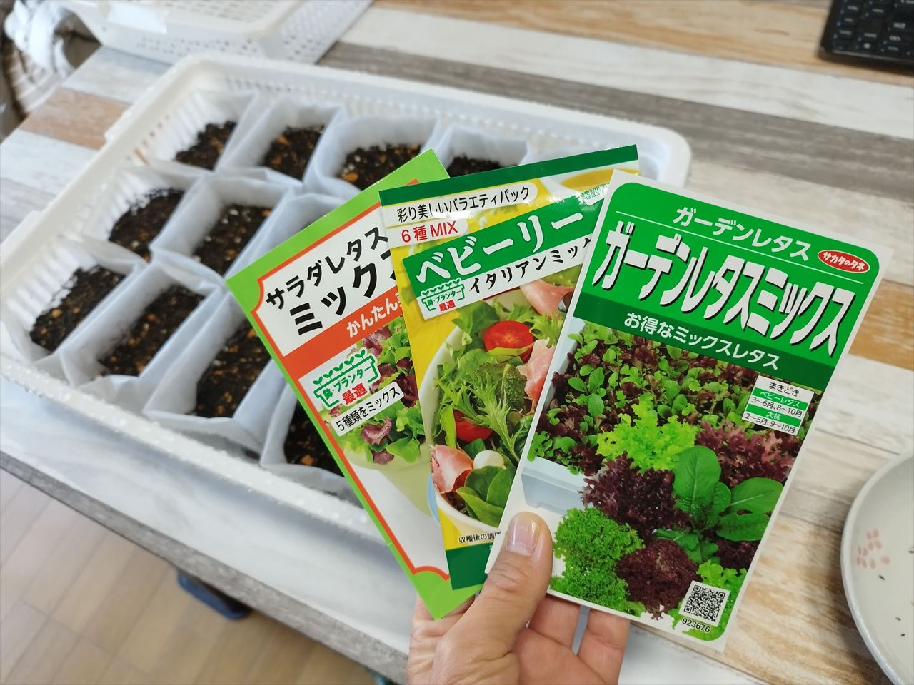 それが先々月から、ベビーリーフに置き換わり、レタスを買いにスーパーや道の駅に行く必要がなくなった。