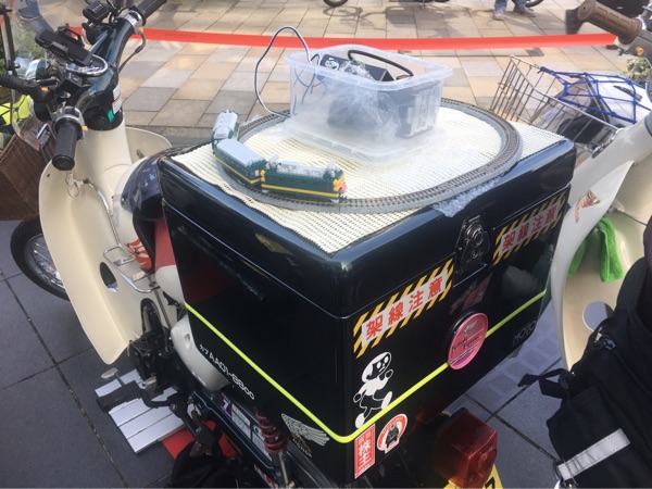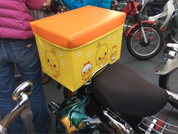 前に「バイク専用のリアボックスじゃないと」と言われ、アイリスオーヤマ箱にダメだしされたことがあったが、少なくともカブの世界では、リアボックスは「こうじゃなきゃ」というものはない。皆、実用度や好みや遊び心、挑戦心でいろいろなものを積んで楽しんでいる。
