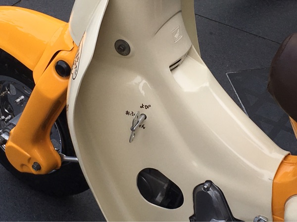 お隣さんのスーパーカブ。乗り手は女性で、さりげなくいろいろなところにキティちゃんが散りばめられているのが素敵だった。例えば前かごのボルト部分なんかも。
