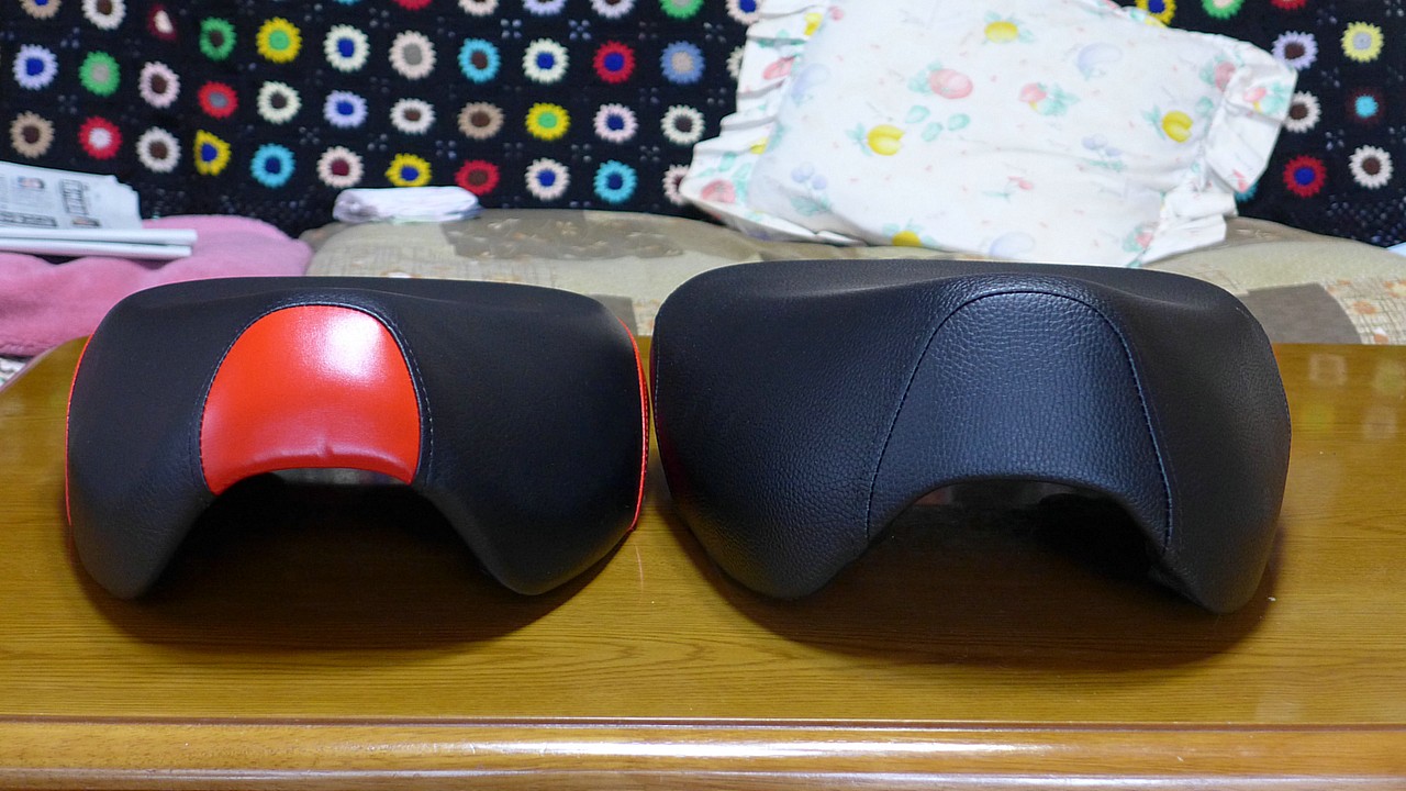 取り付けられているのがデフォルトの純正シートで、後ろにのっているのがアウトスタンディング製。