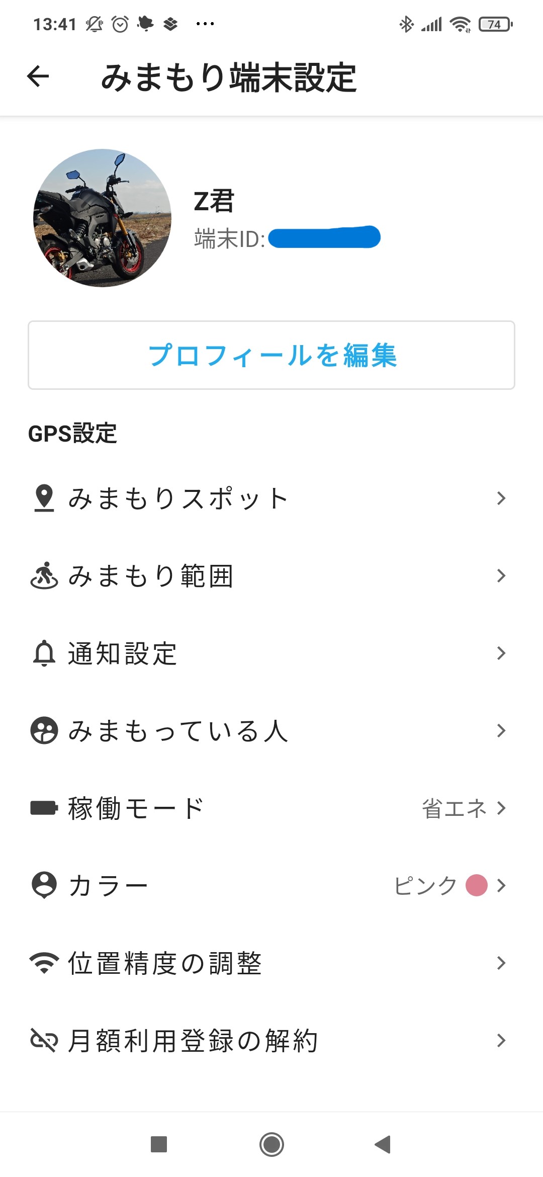 私がこの「みてねみまもりGPS」で見守っているのは、1月に納車された新しいバイク「Z125 Pro」です。