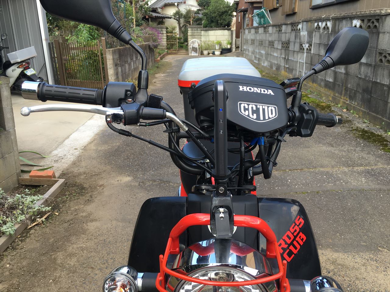 こちらのほうが作りはよかったのだが、残念なことにクロスカブのヘッドライトカバー最上部のバーに取り付けると、マウント下部のでっぱりが干渉してしまいダメ。