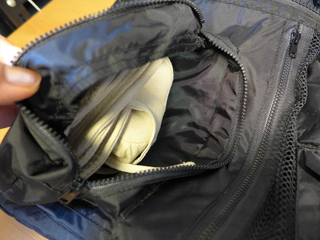 そして背中側の内側にはこんなマジックテープのストラップが2本。