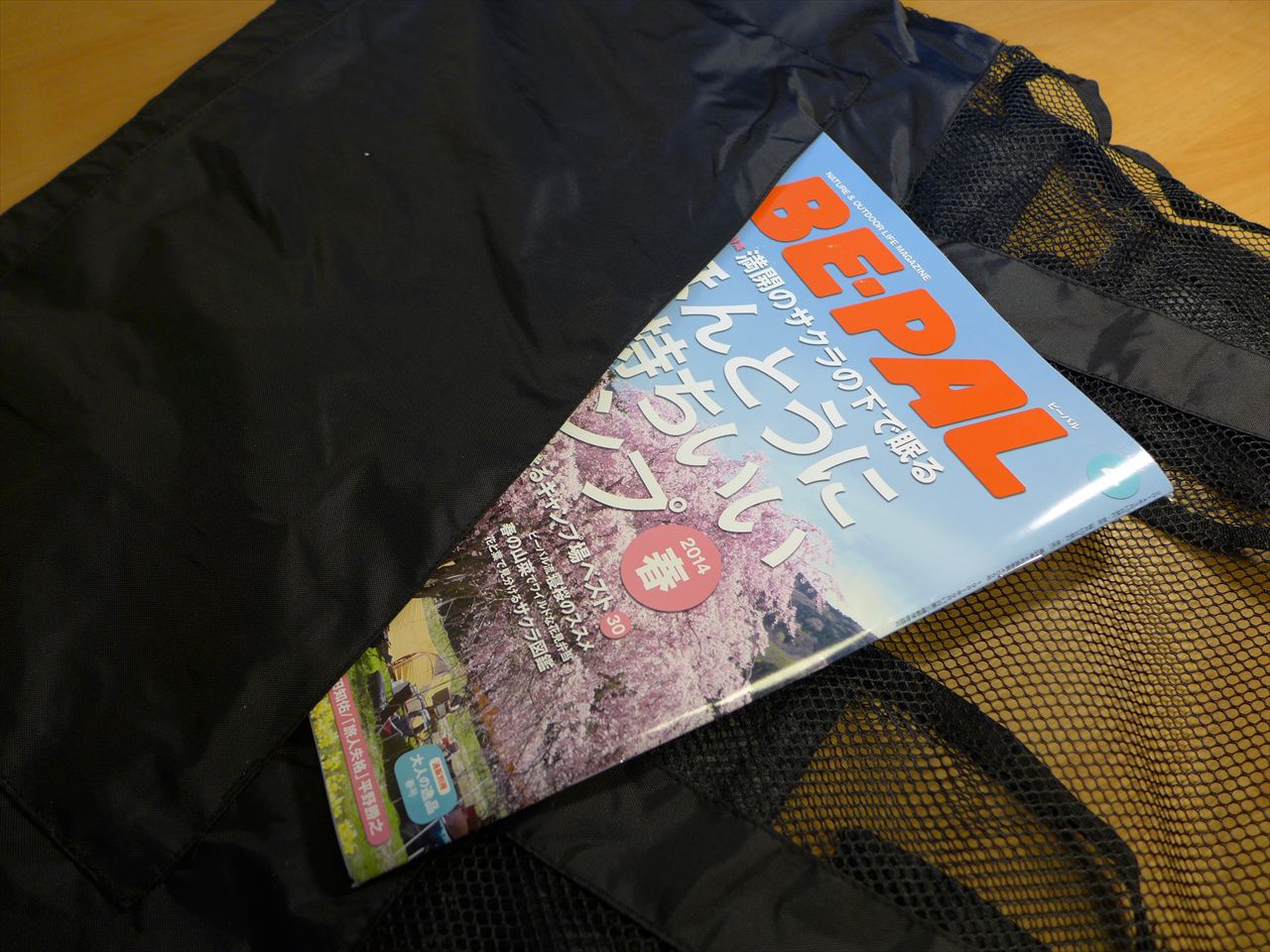 クロワッサンの防災特集号では、ここに折りたためる非常用給水袋や大判除菌ウェットシートなど入れていた。旅行ならエコバッグ的なものを入れておき、どうしても荷物が増えた時はそれを使うというのもありだろう。