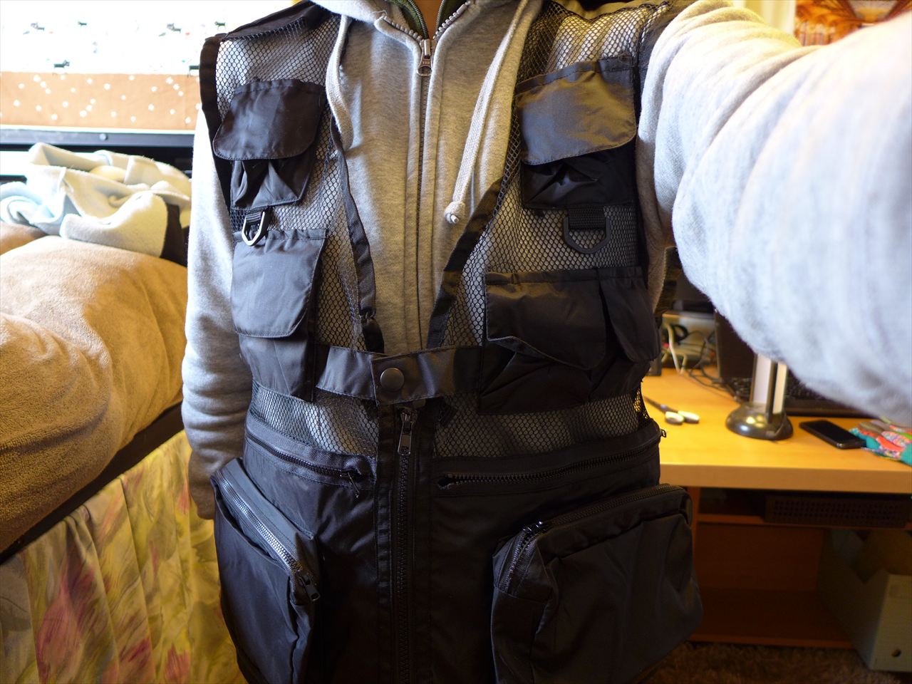 よくプロのカメラマンがこうしたベストを着て、レンズはじめ機材を詰め込んで動いているが、やはりこれが一番、効率的でかつ負担も軽いのかもな。