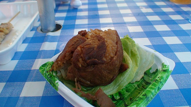 これは、豚でご飯を包んだ「豚むす(300円)」。