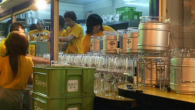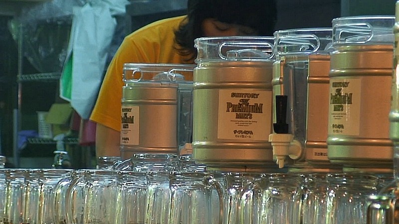 ビールの受取口を中心に、みつばちのようにひっきりなしに動き回っていて大変そう。