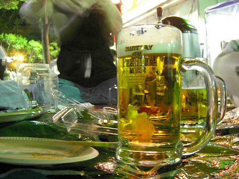 ビアガーデンでは、ちょっと手間でも、毎回冷えた中ジョッキを頼むというほうがいいのかも(冷房効いてない屋外だから)。