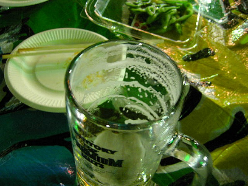 空のビアジョッキ持って、