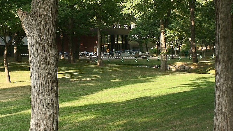 芝生に座ったり、ごろんと横たわったりして涼んでいる学生さんがいたり・・・