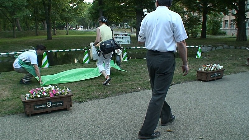 北海道大学の構内は、たくさんの木が植えられていて、芝生の広場や池、人工の川などながれていて、まるで大きな公園のようでもある。
