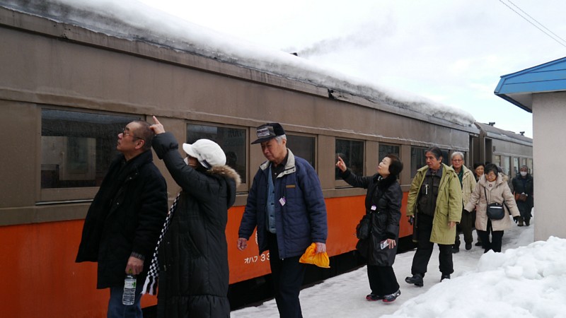 そのうち、このレトロな車両2両がストーブ列車だ。これに乗るには、乗車券の他に300円が必要になる。赤字路線の津軽鉄道の、冬の大事な特別収入だ。