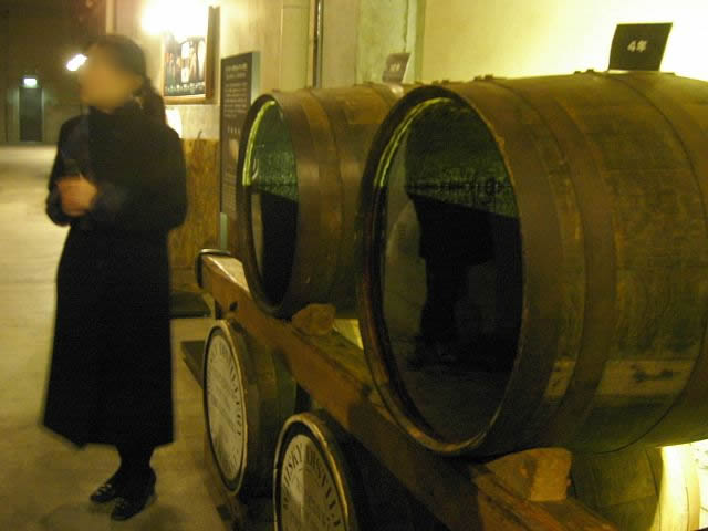 中がどうなっているのかわかるよう、手前を透明版にした樽の前で、ガイドの方が「天使のわけまえ」など説明。この表現、確かに素敵(興味ある方、Googleで検索を)。