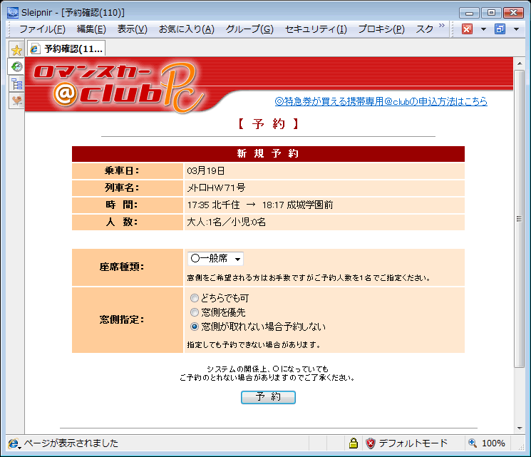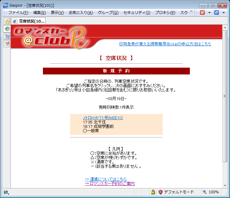 二度と使わないかもしれない「ロマンスカー@Club」に会員登録して、空席状況の確認。