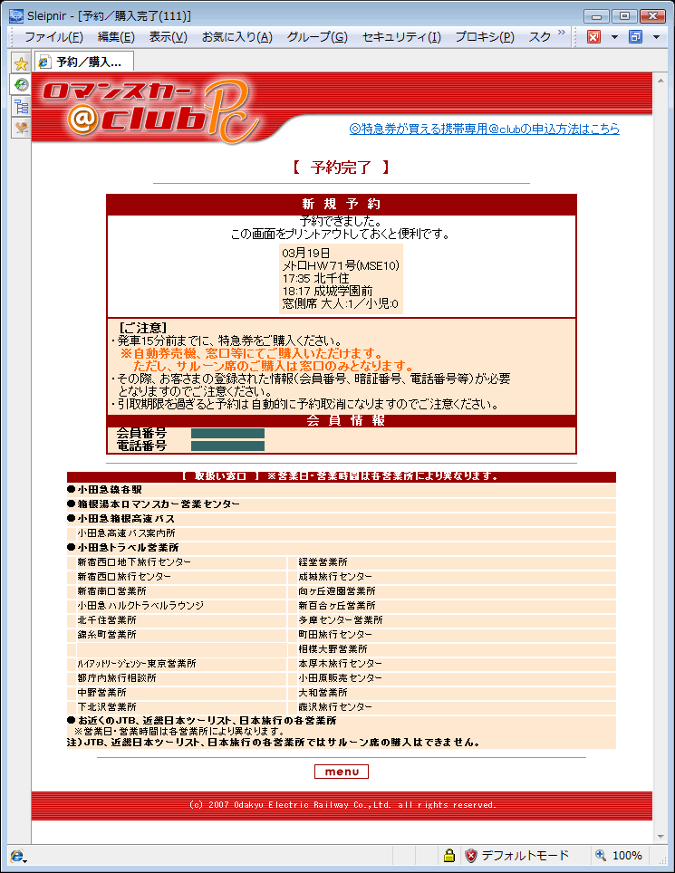 何か予約番号が発行されるのかと思ったらそれはなく、購入時には、自分の会員番号などで照合するらしい。