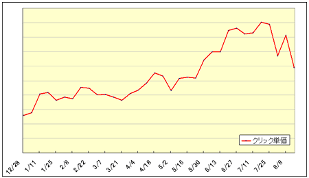 ちゃんと調べていないので推測だが、おそらくECサイトがお盆休みでサポートも止めてしまうことなどから広告出稿を一時停止しているのかもしれない。それで相場が落ちているのだろうか。