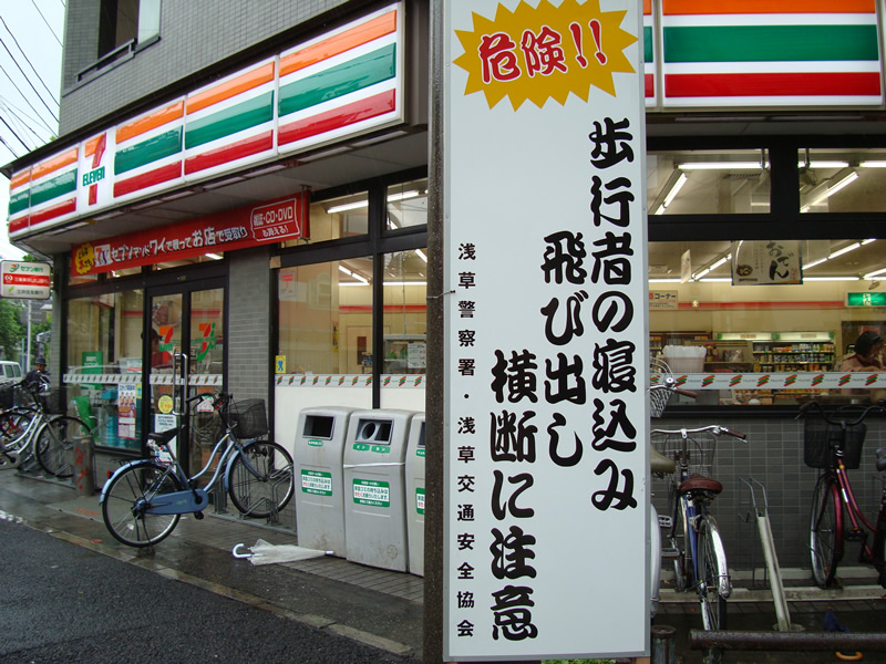 わだ 2007年10月10日 07:45 千夏さん、 これ、東京台東区と荒川区の境目にある、 泪橋交差点というところにあるコンビニなんです。 さすがに大通りなんで、寝込んでる人はいませんでした。 コーヒー豆のチョコ、おいしいですよね。 ヒカルさん、 私もツボでした。横断歩道で撮影なんて危険なんですが、我慢できずについ。 PhotoPierreさん、 > 歩行者は寝込んでませんよねぇ? むむむ・・・確かに。 そっか、この看板は、そもそも文章的に無理があったのか。運転手が居眠りというのはあっても、歩行しながら“寝込む”ことは難しいですよね・・・。 返信