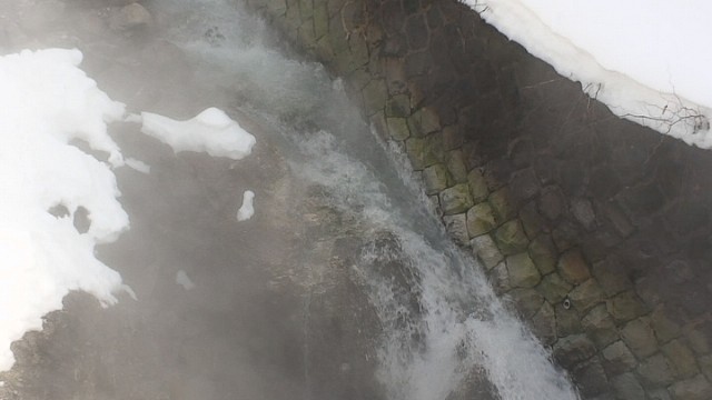 雪の合間を、温泉が湯気をたてながら流れている。