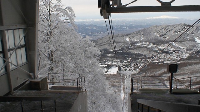 朝8時代の小田急線並みの「詰め込み」ケーブルカーに乗って、標高1331mの樹氷高原駅に到着。