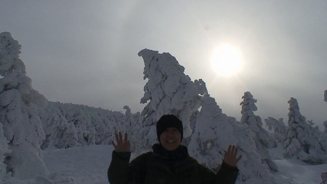 海老天みたいな樹氷の前でぴーす♪