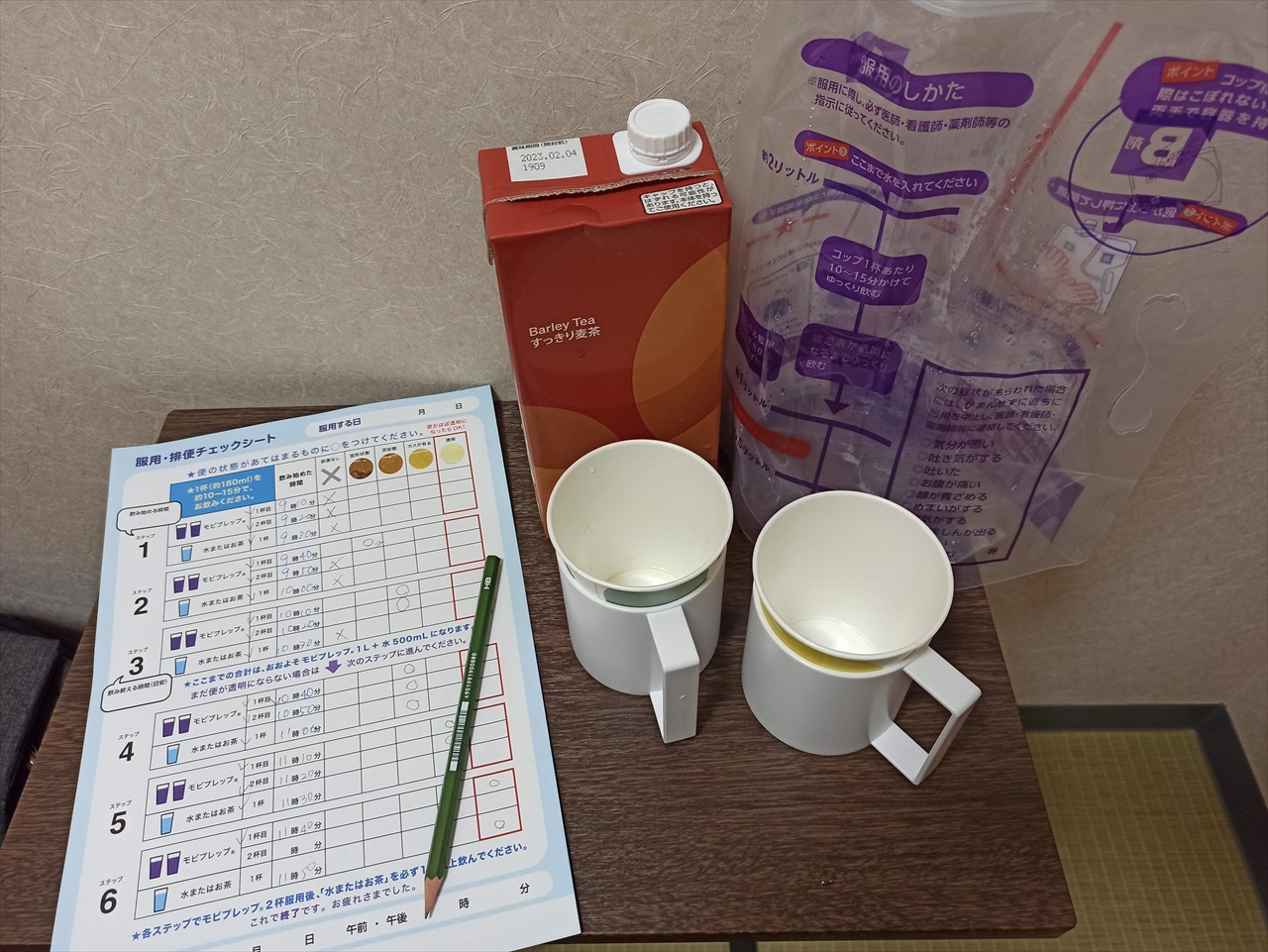 容器に残っていた最後1杯分のモビプレップと1杯分の麦茶を飲んだ。