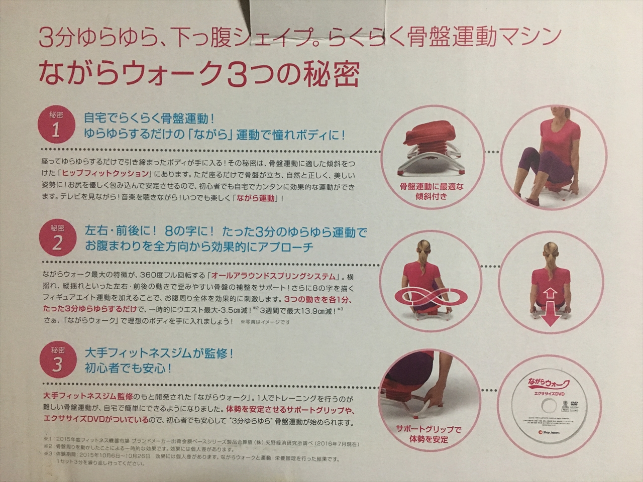 ショップジャパンの骨盤エクササイズマシン「ながらウォーク」のモニター募集を見つけ速攻応募。実はもともと気になっていた商品だった。