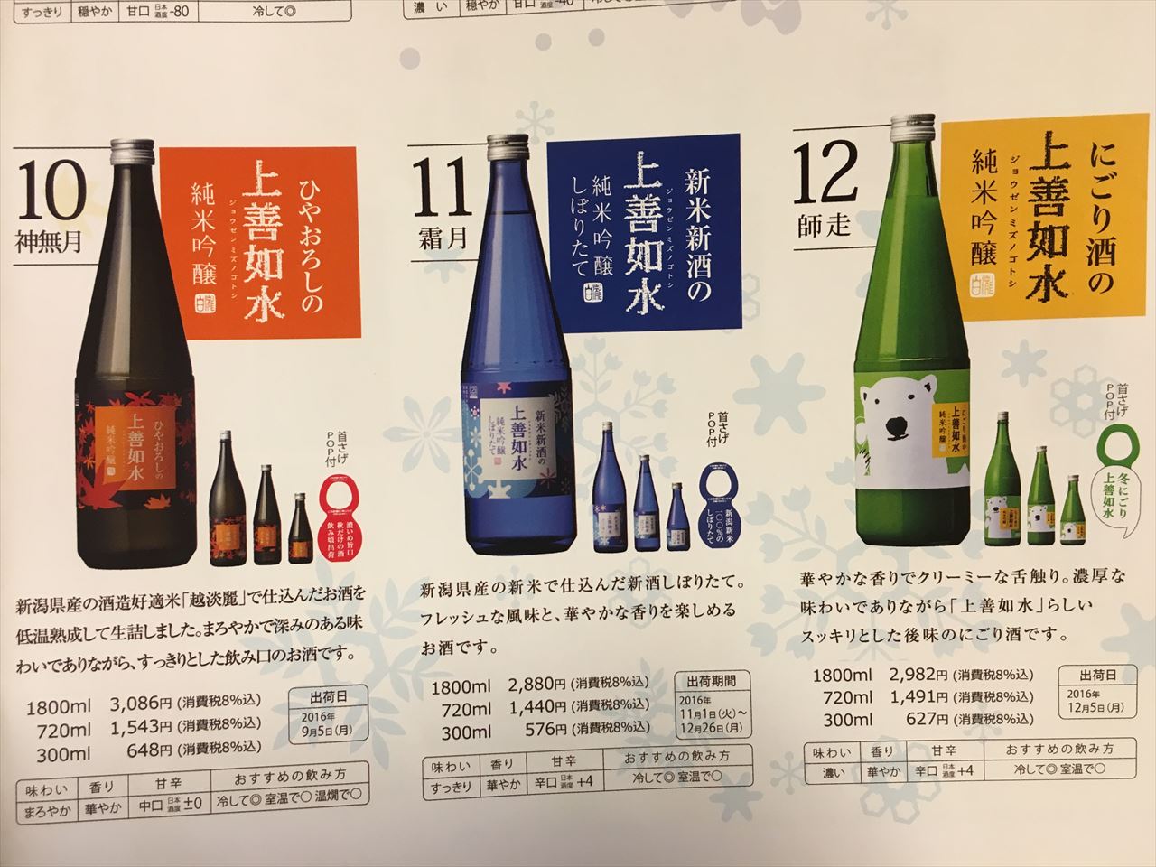 そして10月にはひやおろしが登場し、11月には新酒、12月にはくまさんラベルのにごり酒。