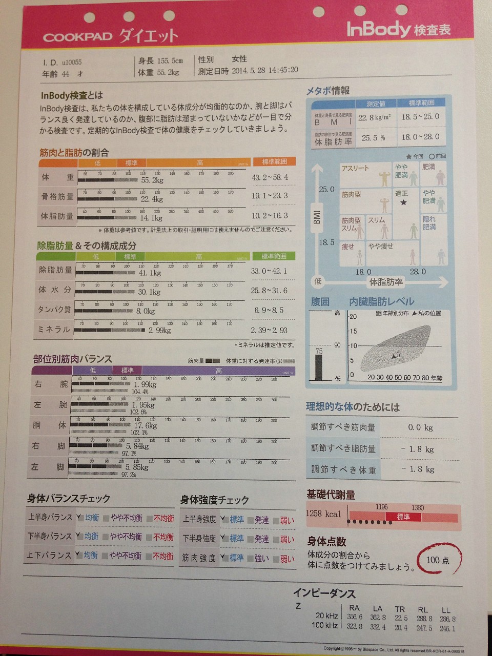私は埼玉在住時に、通っていたフィットネスクラブで三か月ごとにInBody測定していたが、自分の身体に関して非常~に細かなデータがとれる。