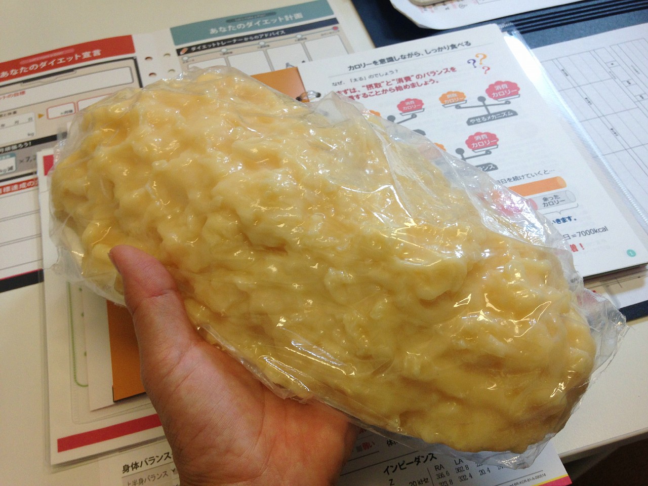 1キロ分の脂肪は結構重たく感じるし、容量もかなりある。私は半年でこれを3個分新たに身に着けたわけだ。そりゃ体全体が重たくもっちりするわけだ。