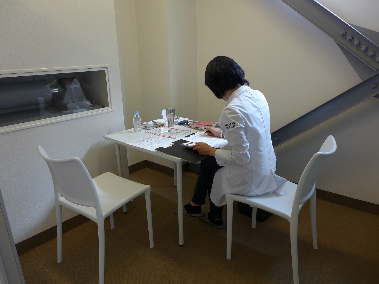 クックパッドダイエット開始時点と一か月後でどう変わるか定点観測用に、スタッフが写真を撮ってくれる。ラボ側の記録としては用意されている服でなのだが、希望すれば自分が着ている服でも撮ってくれる。せっかくなので、私はシャツだけ脱いで、ユニクロのブラトップで撮影してもらった。