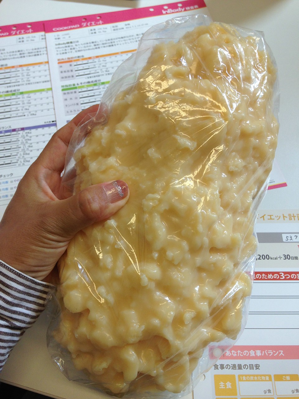 ごはんや食パンが一食分でどの程度のカロリーなのかなども説明され、毎食、主食やお肉をどの程度食べるべきかなども、わかりやすく指導してもらった。