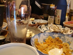 で、ビールがんがん飲んで、赤ワインのボトルも明け、そのうち焼酎もでてきて、女4人で飲んだくれ。