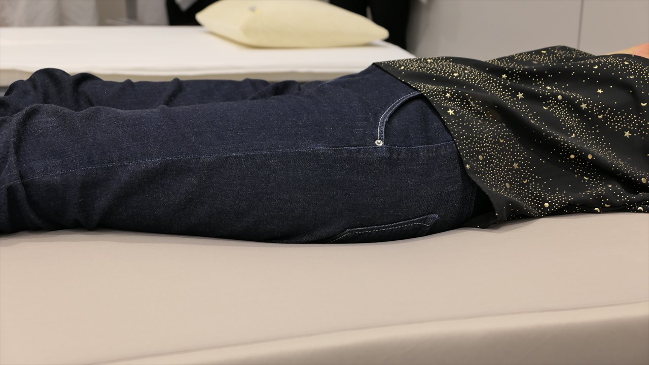 腰回り・肩などは適度に沈み込みつつ、身体の軸はまっすぐに保たれるので、寝心地もいい。