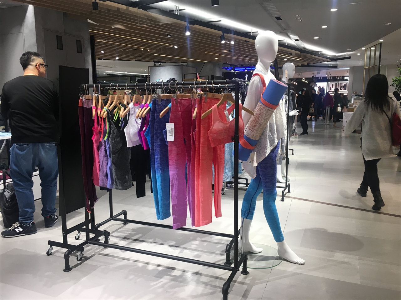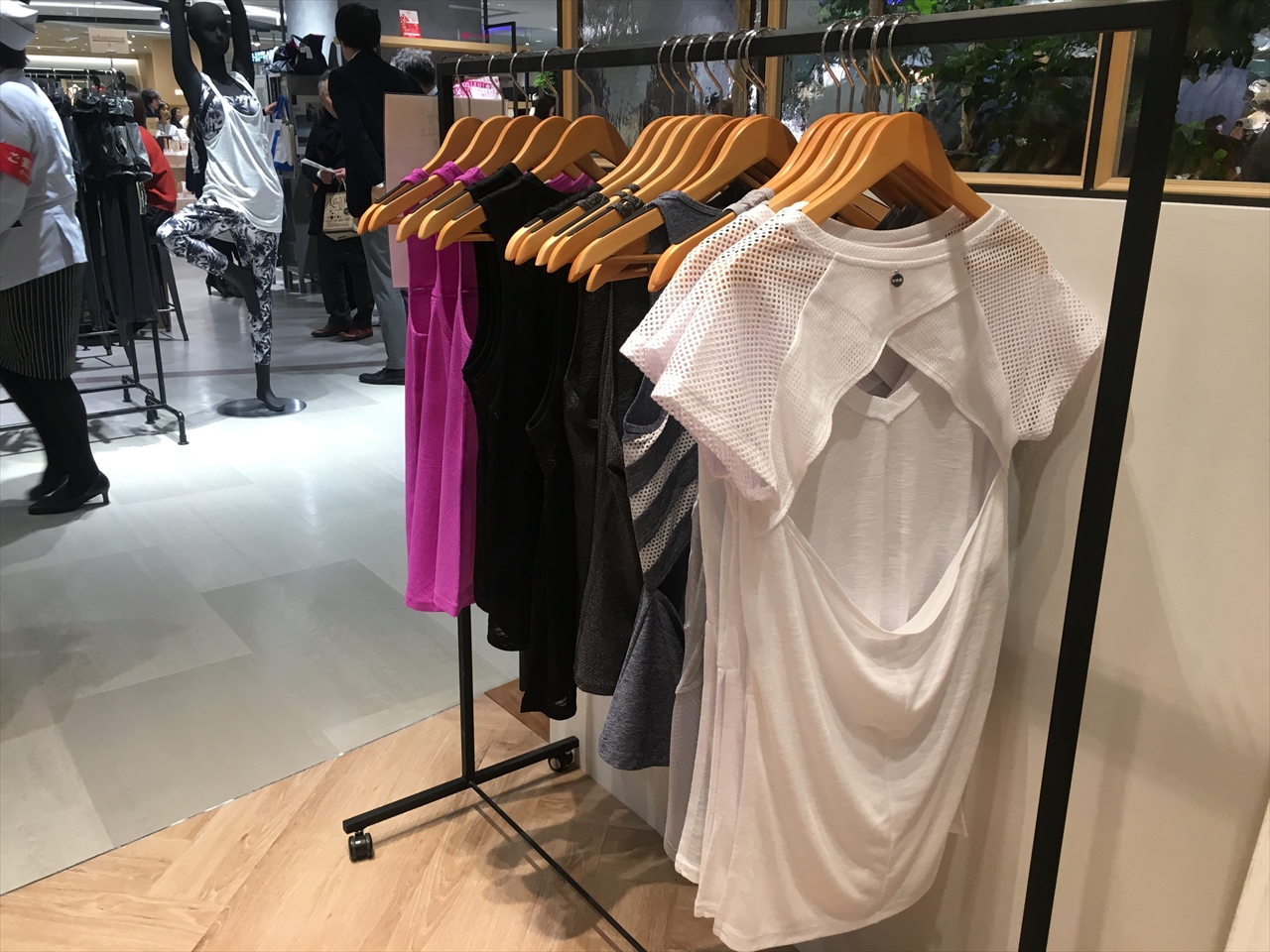 伸縮性・吸水性・通気性などに優れた素材のものが集められており、ちょうど地元のジムに通い始めたばかりの自分がまさにほしいファッションだらけ。ここ目当てで来ている人も多かったのかもしれない。終始混みあっていた。