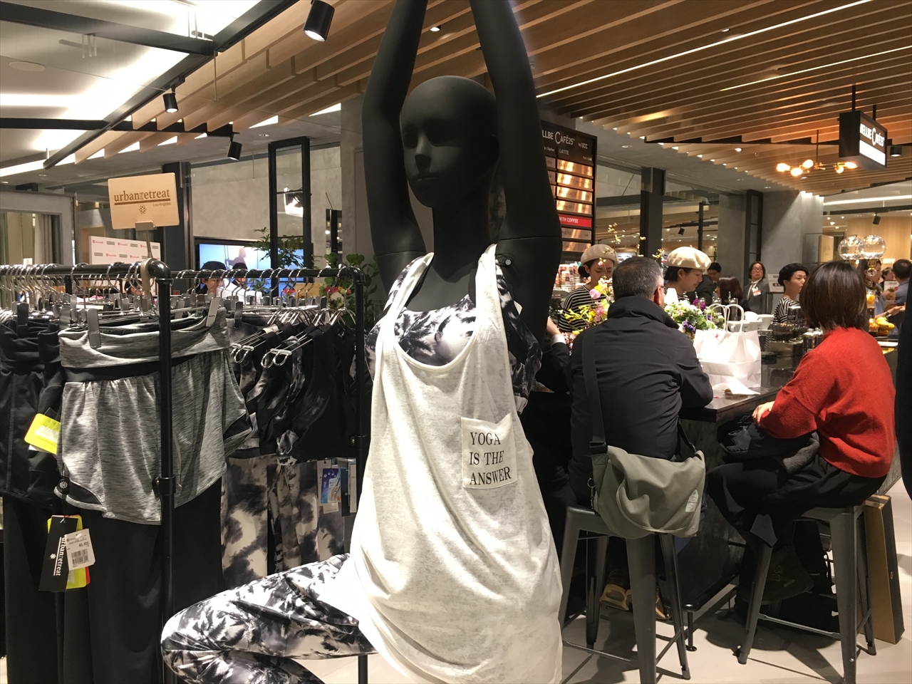 アスリートのためのショップ、という気合入りまくりの空間ではなく、もっとゆったりした雰囲気。ヨガウェアを中心に、フィットネスクラブやランニングなどで着てみたいおしゃれな服がたくさん並んでいる。自分はヨガをやっていないが、フロアを歩いているうちに無性にやってみたくなったほどだ。
