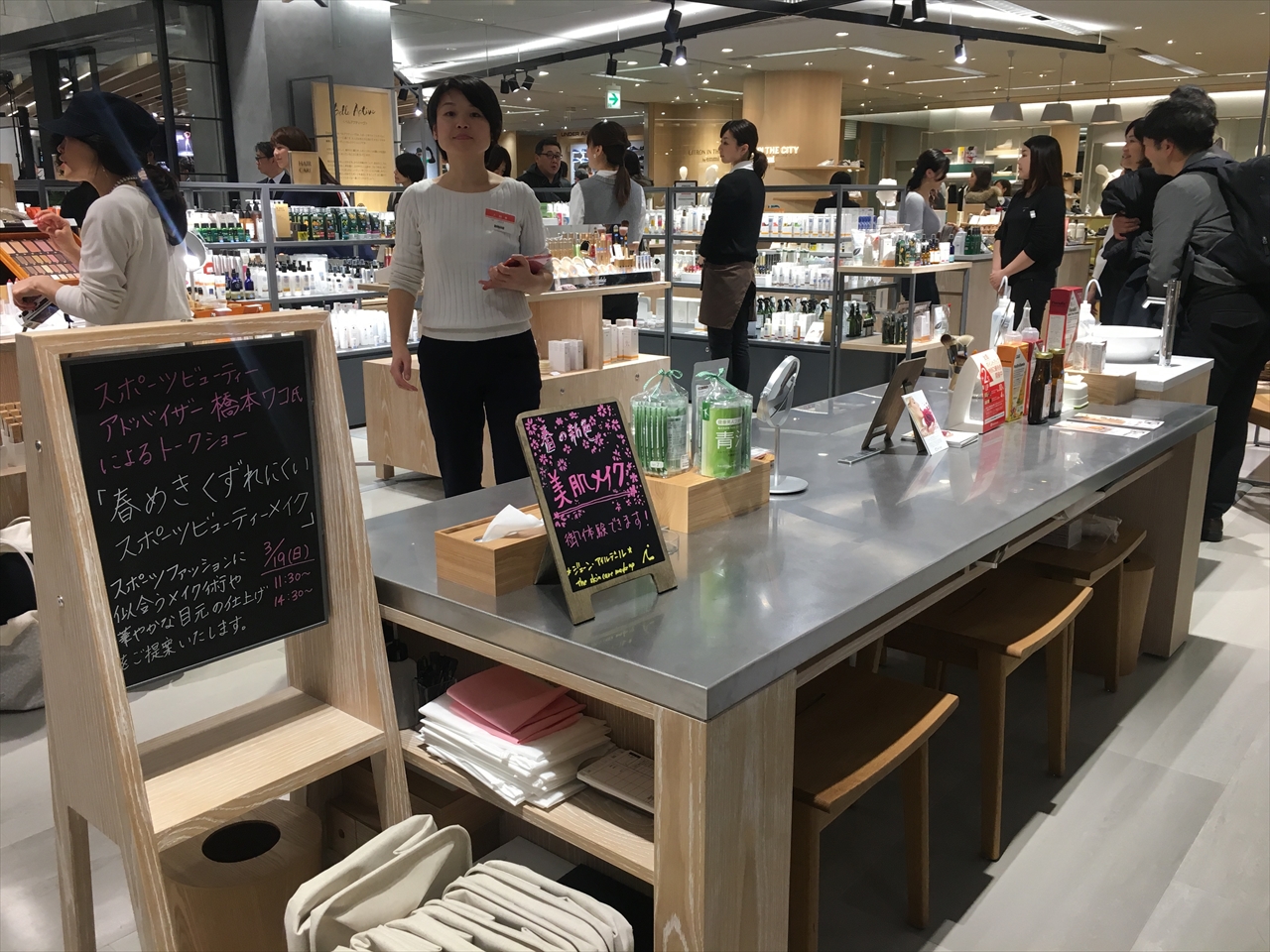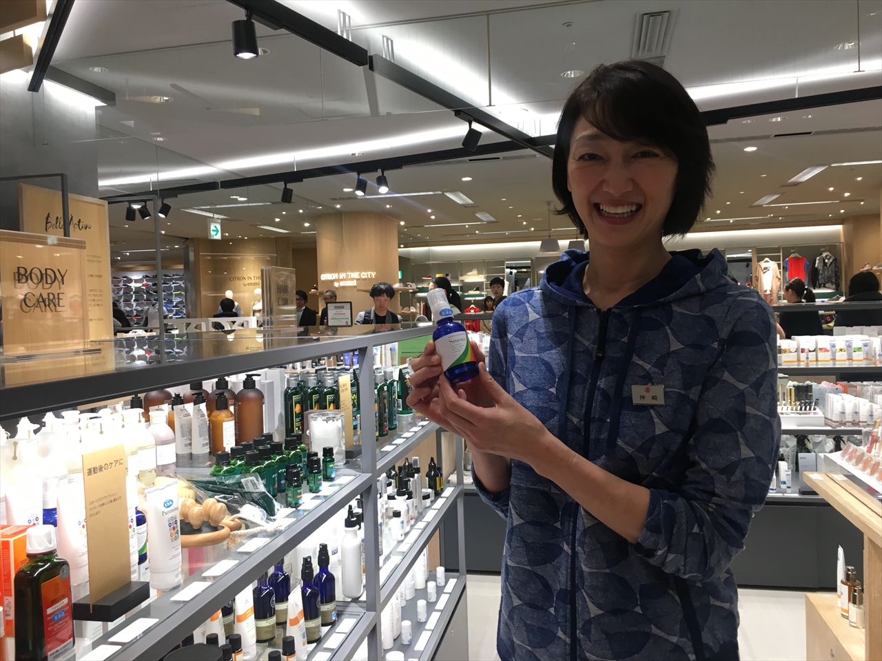 この日はオープニング初日で、神崎氏ご本人が来場しトークショーを行い、オリンピック選手村にスポーツアロマトレーナーとして招かれ体験したエピソードや、800点にも及ぶアイテムセレクションについても語られた。