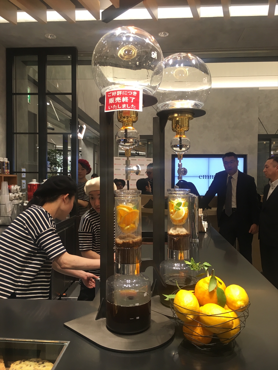 残念ながら「販売終了」の掲示があったが、聞いてみると日本初の「ナチュラルフレーバーコーヒー」だそうで、季節のフルーツを透過させて抽出したコーヒーが一日数量限定で飲めるらしい。