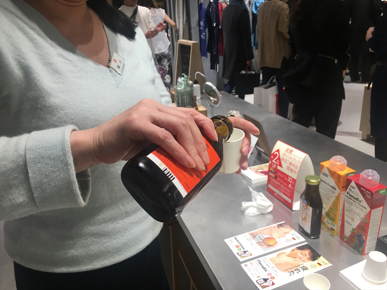 他にも珍しいサプリメントや、オーガニック食品などあり、スタッフから説明聞いたり、試飲させてもらったりした。広いエリアなこともあり、結構な時間滞在していても回り切れない。
