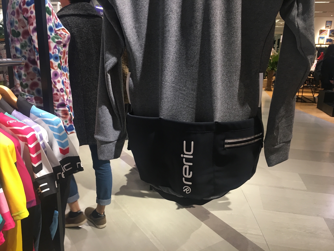 実は初めて見かけるブランドだったのだが、日本のサイクルウエアのブランドだそう。自転車用だけでなく、ジョギングやジムなどで使うのにもよさそげなウエアが多数並べられていた。