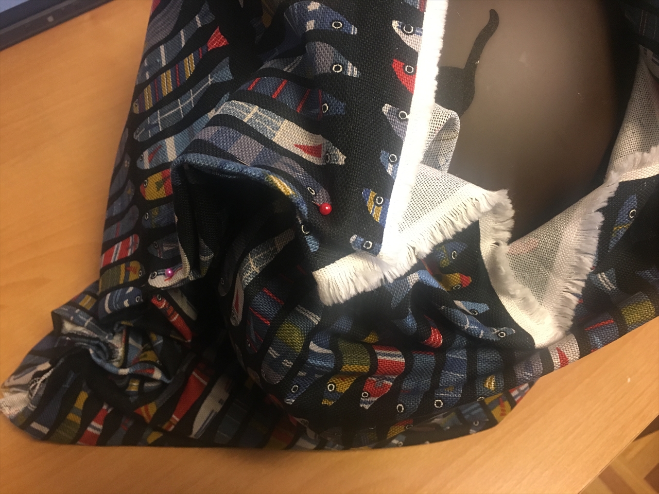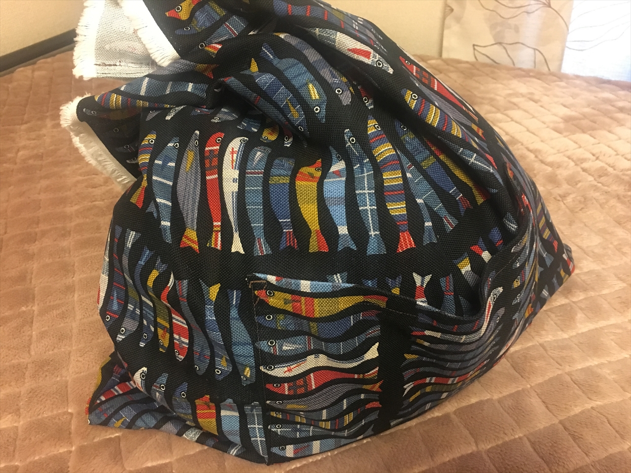 親に付き合って手芸用品店にいったら、何やら素敵な布発見!何に使うかあまり決めず1メートルだけ買ってきた。考えた結果、ヘルメットを入れる袋を作ることに。