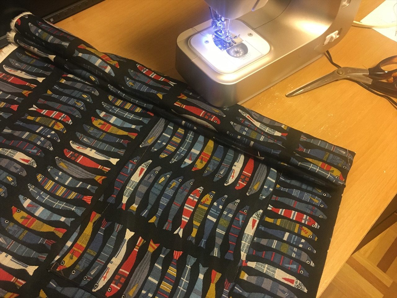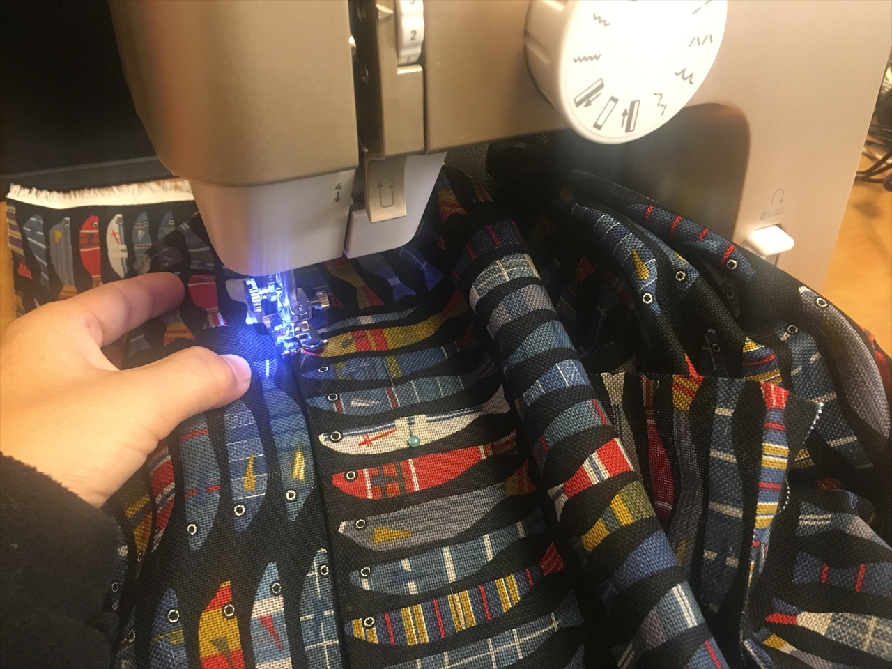 ほつれやすい生地なので、袋の両端は袋縫いに。