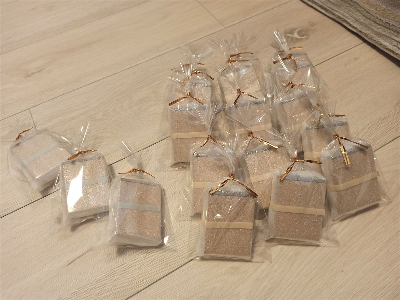 梱包のための発砲シートでくるんでマスキングテープでとめ、それを小さなビニール袋に入れて封をする。手間はかかるが、こんな素人作品を買ってくれるなんて本当にありがたいことなので、感謝の気持ちを梱包に込めた。