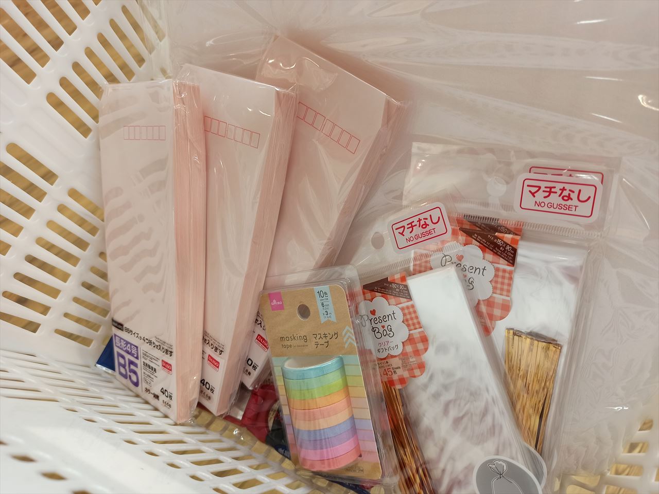 梱包・発送のための素材はすべて100円ショップのダイソーで調達。