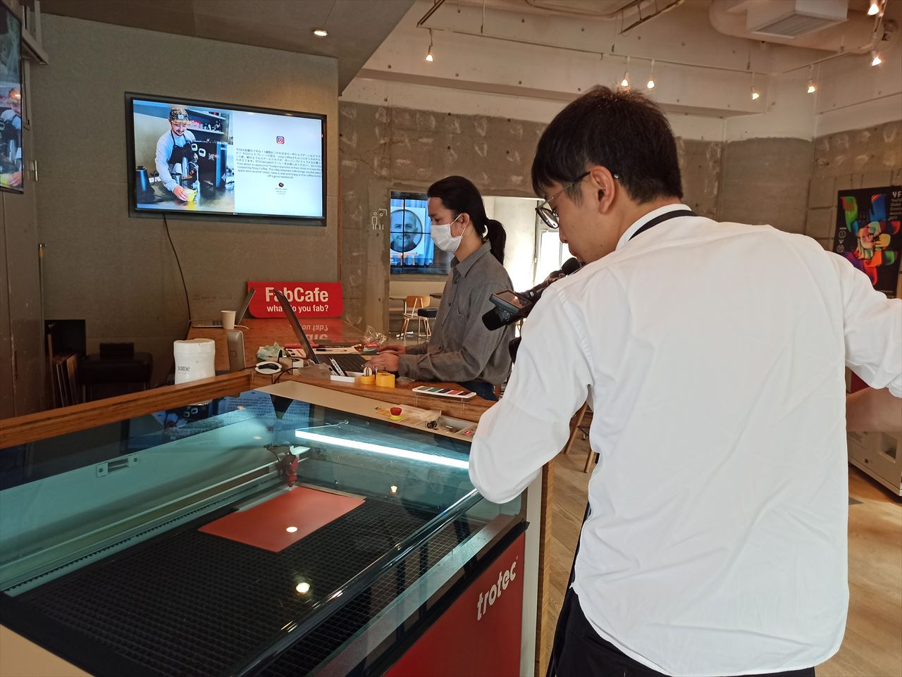 レーザーカッターや3Dプリンタが使えるカフェ「Fabcafe」だ。初心者向けレーザーカッター講習会があると知り、さっそく申込んで受講したのが2月23日のこと。