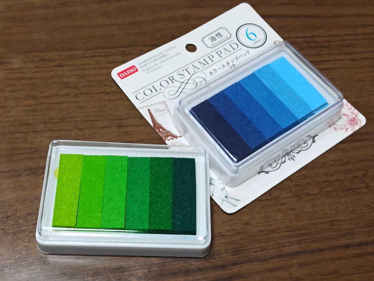 ちなみにおススメのスタンプ台はダイソーの青・緑グラデーション。